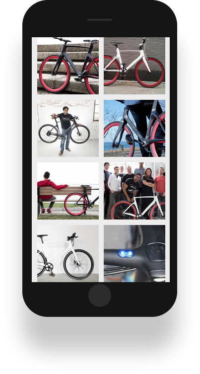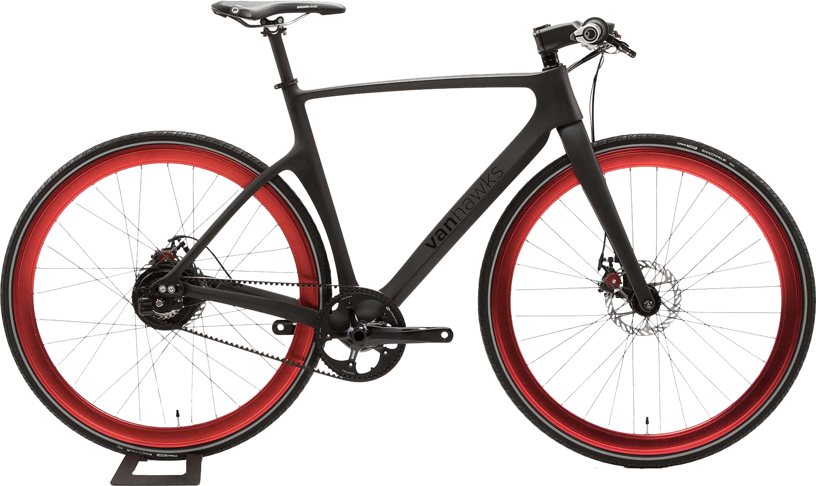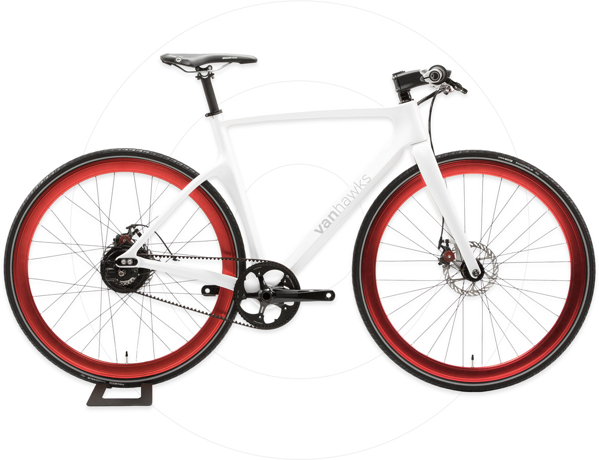 The bike with lights in its handlebars, which indicate when you should turn left or right to get to your destination.